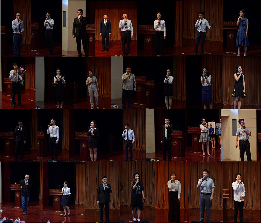 答辩现场气氛热烈,答辩方式也是别出心裁。其中,理学院丁书江老师从自己眼中的优秀导师和其学生眼中的优秀导师两个方面阐述了对于优秀导师的见解,更是表达了自己勤于治学的科研情怀和尊重学生的教育理念。机械学院的赵升吨老师以秉承着“忠以为国、智以保身、商以致富、成名天下”的做人原则与“翱翔前沿、交叉融合、循序渐进、宏大刚毅”的科研情怀深受学生爱戴。法学院马治国老师声情并茂地讲述了他和他导师的故事,并提出了“三个全面”的育人理念,即“知识全面发展、综合能力全面提高、实务能力全面达标”。此外,生命学院刘健康老师、能动学院王江峰老师、数学学院何银年老师以及电信学院管晓宏老师的答辩人与后援团更是以自创打油诗的形式来赞颂老师,引得大会现场笑语连连。